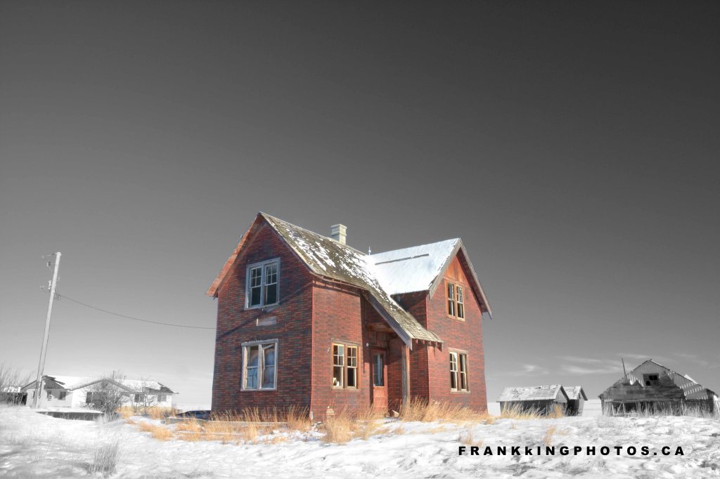 I spent nearly an hour finding various ways to photograph this beautiful old western Canadian property. Playing around with the results produced pictures like this, where I converted everything but the house into black-and-white. Makes for an impactful image, yes? Nikon D7100, tripod, polarizing filter