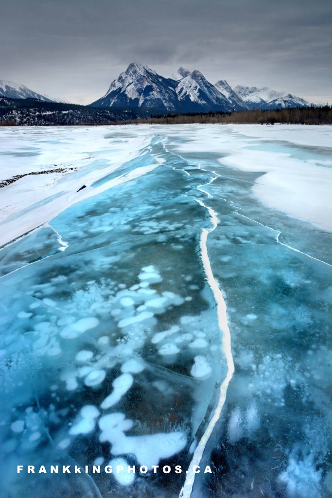 This man-made lake in the Canadian Rockies is famous for the methane that produces cascades of stunning ice bubbles. I wasn’t there at quite the right time (a recent melt obscured many bubbles), but still managed to find compelling scenes like this.