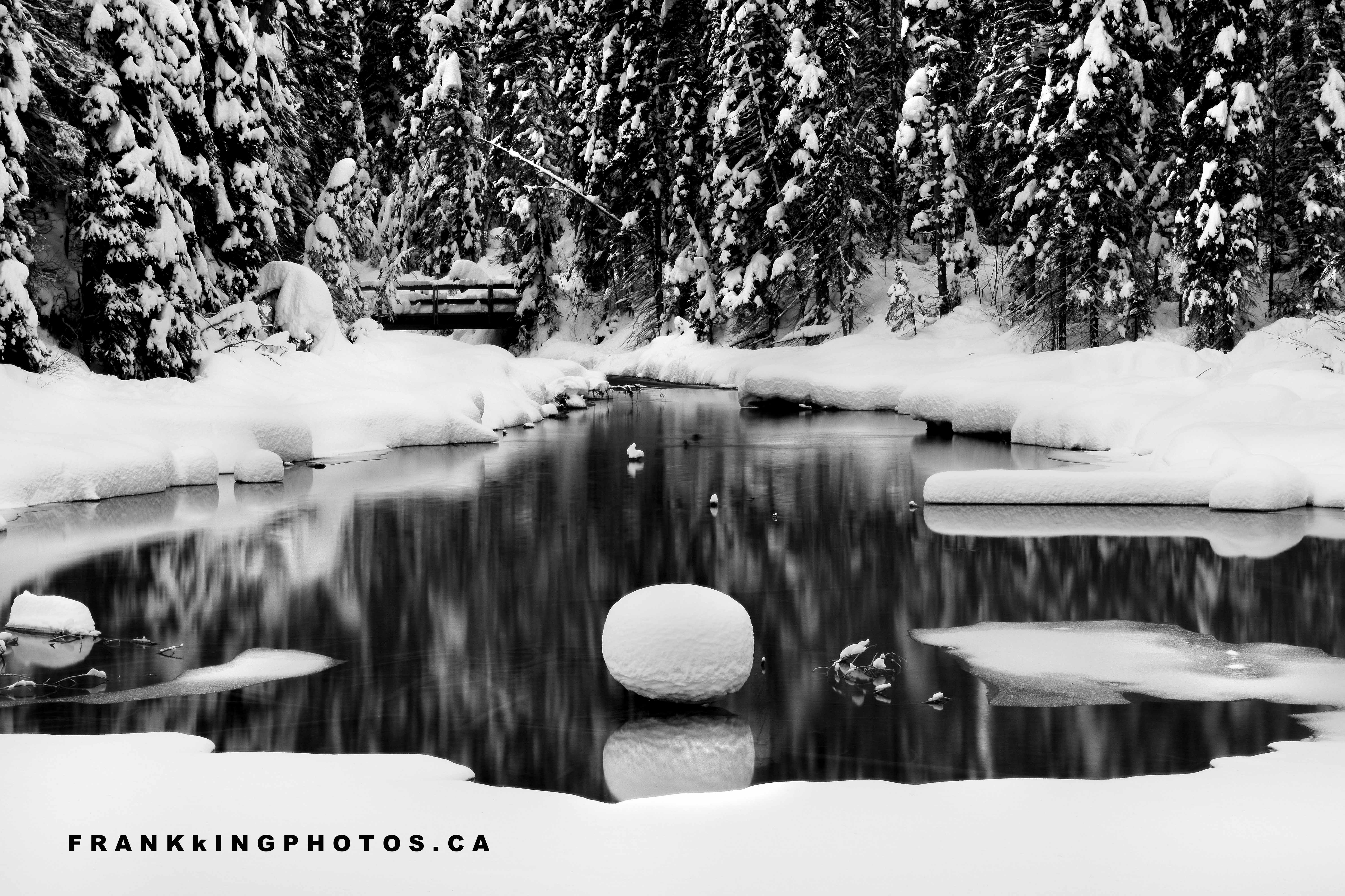 black-and-white winter stream ,
