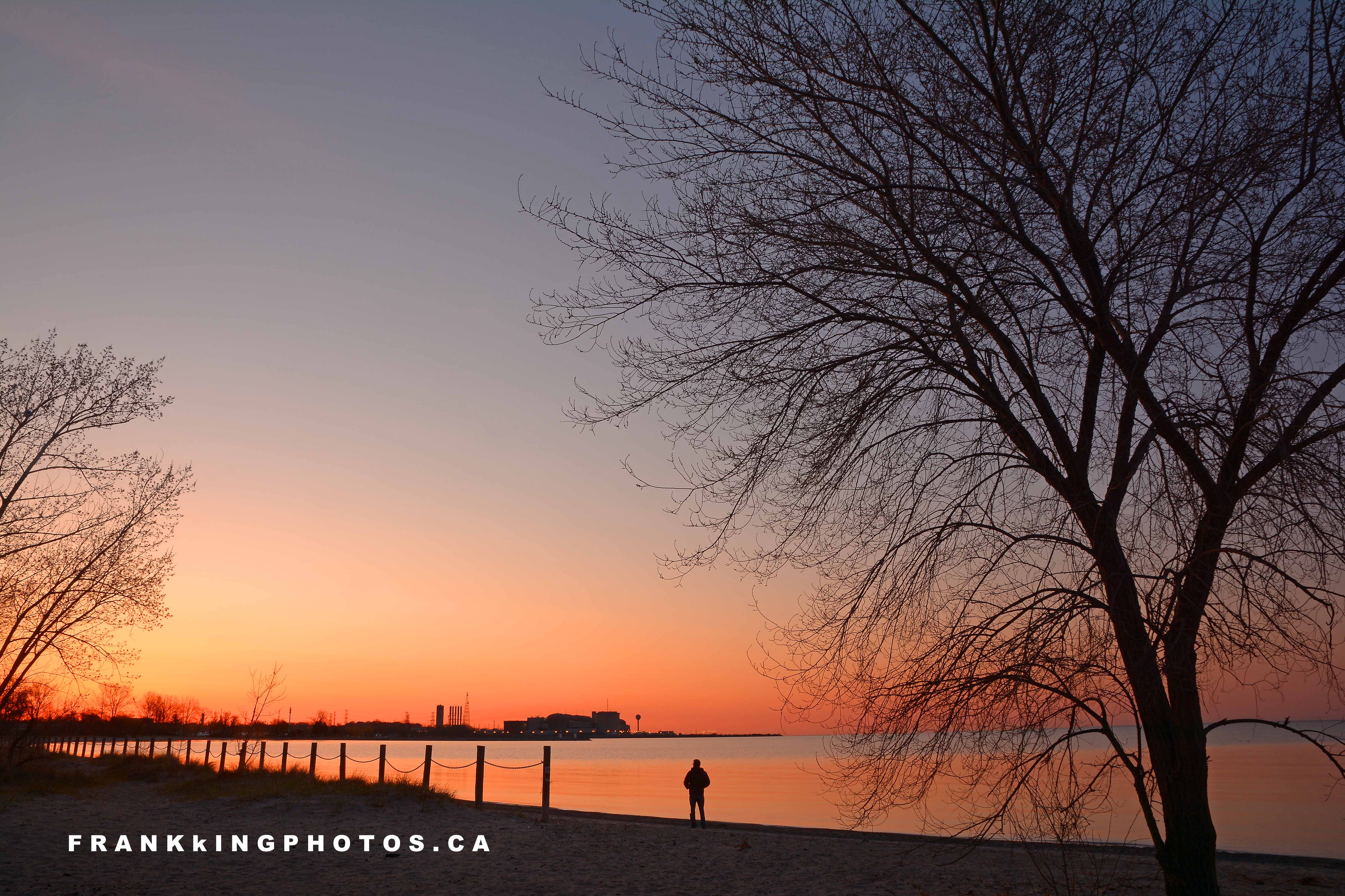 During a recent trip to this central Canadian province, I wanted to visit a new area for sunrise photography. During all my years living in this region, I’d never checked out Frenchman’s Bay, so that’s where I went. As you can see, it turned out well. That’s Lake Ontario on the right and, on the horizon, the Pickering Nuclear Plant. A man going for a early walk graciously posed for me, providing a silhouetted human element that draws your eyes to it. Nikon D7100, tripod, enhancing filter