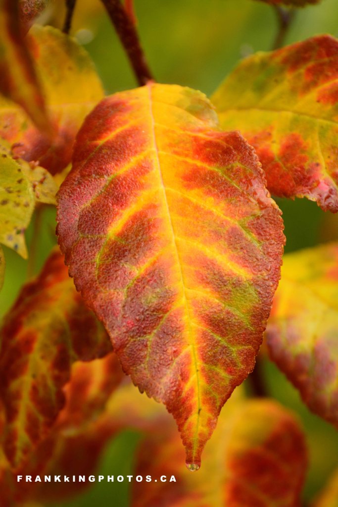 This part of Alberta is renowned for its dramatic badlands landscape, but I think it should also be known as a place of remarkable fall colours (just check out this scene: https://wp.me/p2ccTX-1nw). Amidst many photogenic landscapes, the dramatic hues of this leaf grabbed my attention.