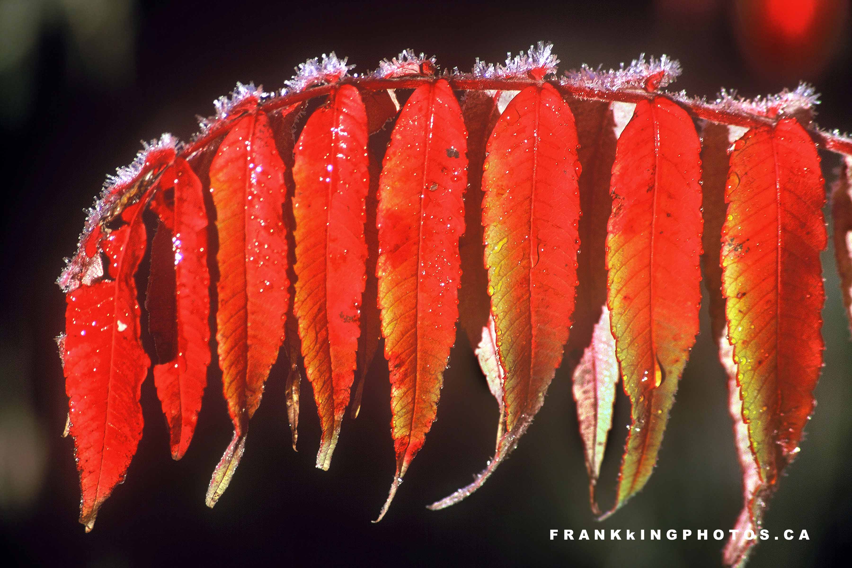 SUMACH BRANCH ON A COLD FALL MORNING, BALSAM LAKE PROVINCIAL PARK, ONTARIO
