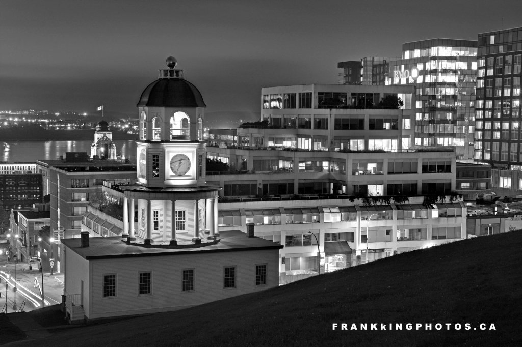 During a recent business trip to this eastern Canadian city, I was blessed to have time on my own to explore the city’s downtown. The citadel is a prime feature, with this building the front face of a massive, star-shaped British fort built in the 1800s. The challenge was making the building stand out against a very busy urban background. Hopefully, I accomplished that by putting the tower between the office building and a distant tower. There was very little strong colour in this pre-dawn scene, so it was an easy decision to go black-and-white. Nikon D7100, tripod