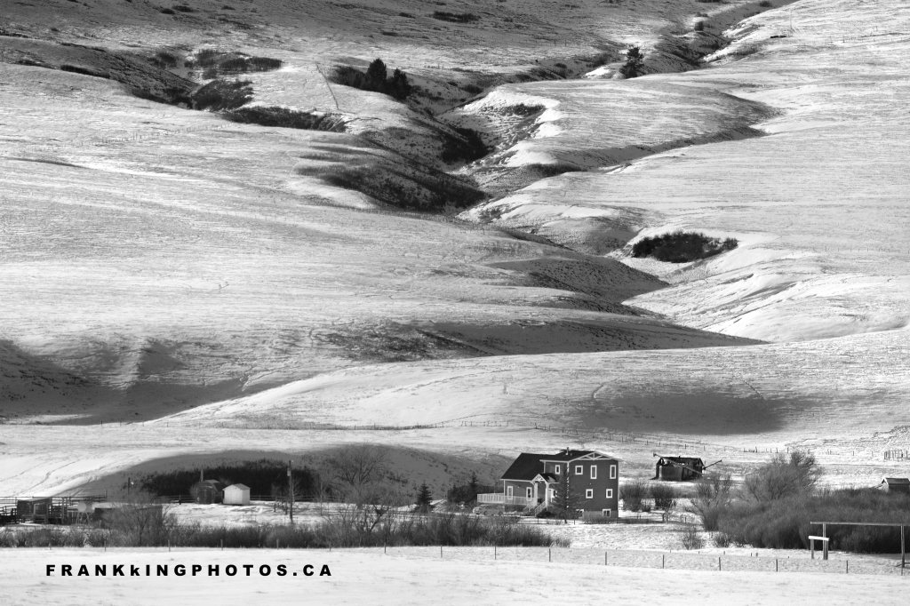 How’s this for living in a dramatic landscape? I used a big telephoto lens to exaggerate the effect, squeezing the homestead against the hills and coulees behind it. There was almost no colour in this scene, so it was an easy decision to go black-and-white – which also heightened the drama. Nikon D7100, tripod, polarizing filter, 70-300-mm zoom lens