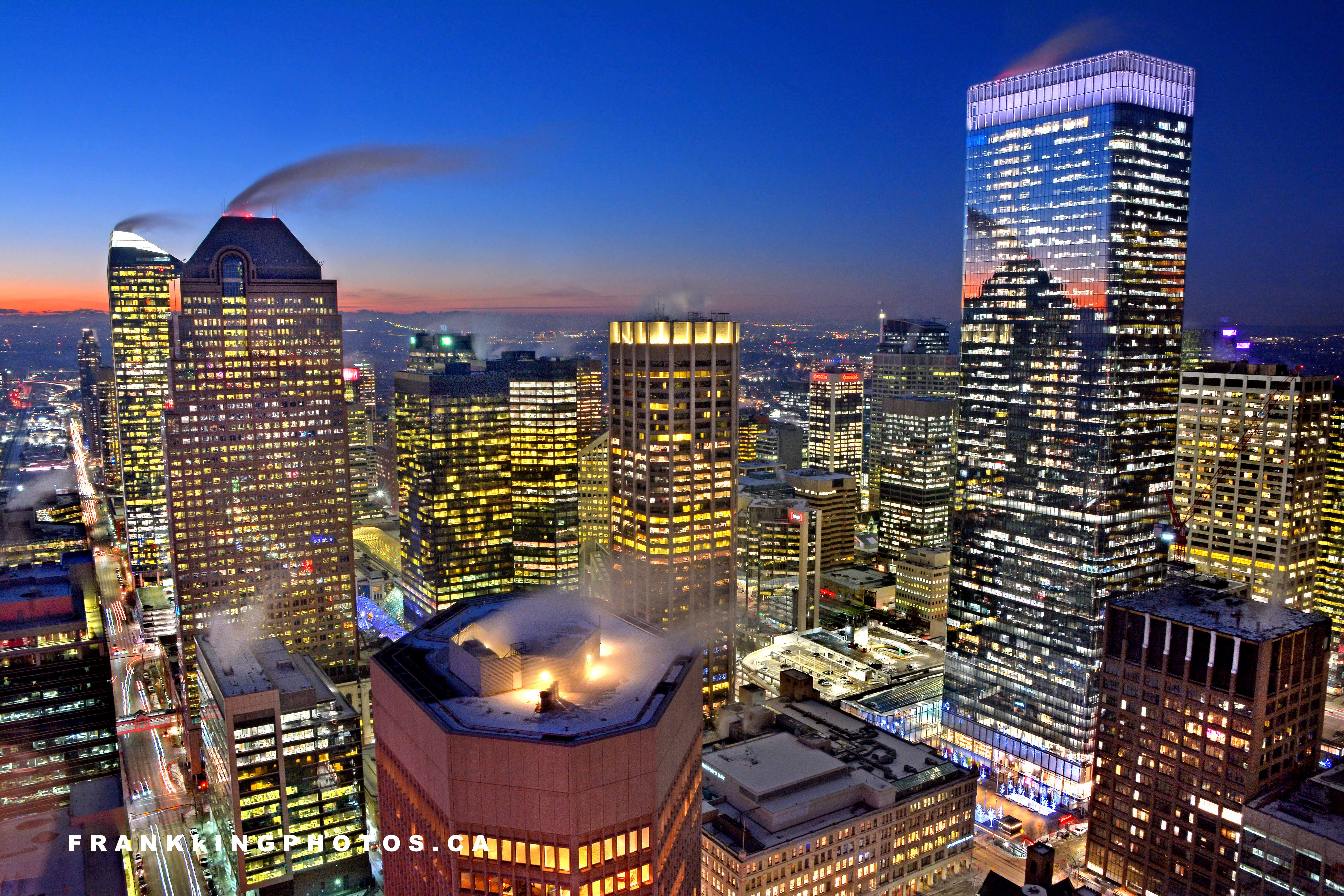 PART OF THE DOWNTOWN SKYLINE AT SUNSET, CALGARY, ALBERTA