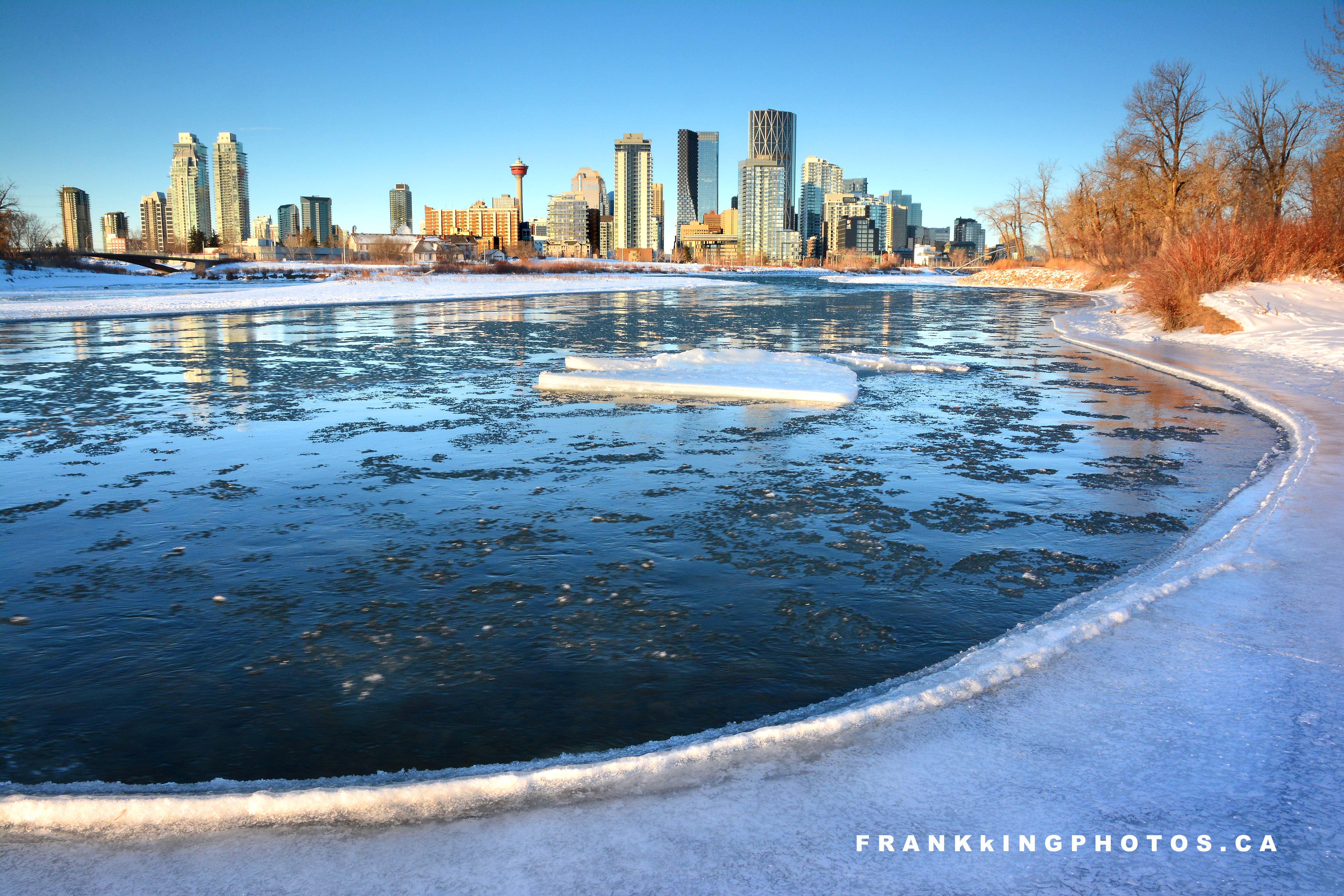 This river, which flows out of the Canadian Rocky Mountains, is an endless source of photographic inspiration, no matter what season or weather. I come back to it time and time again and find great creative opportunities. In this case, the curve of the ice made a compelling frame to the downtown skyline reflected in the icy water. Nikon D7100, tripod, polarizing filter, graduated density (darkening) filter on the sky