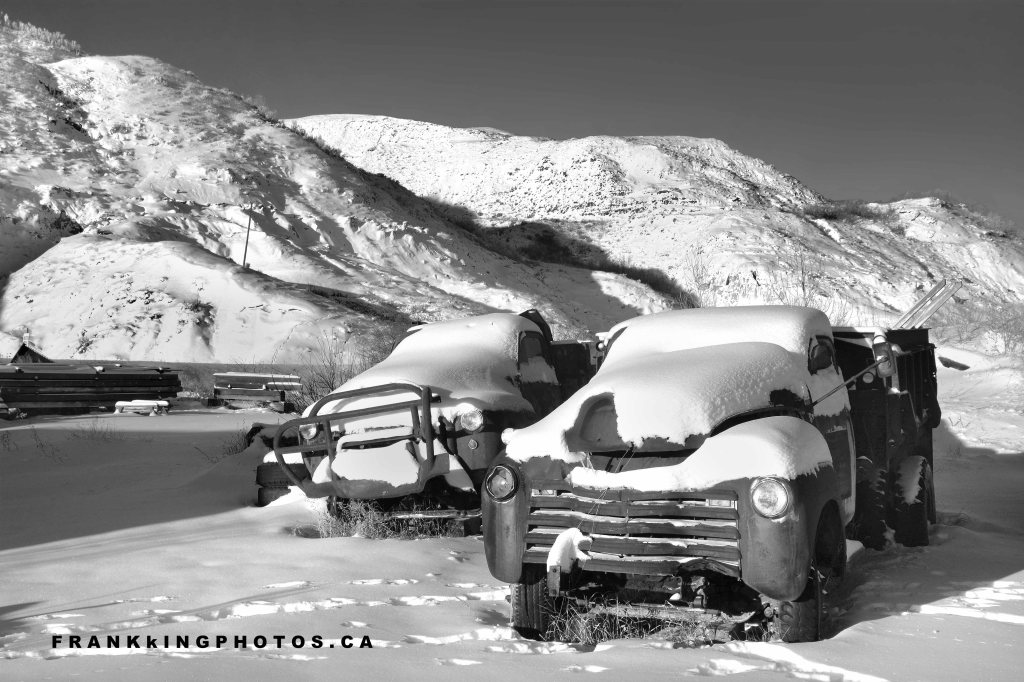 Old vehicles are a favourite photography subject and I really loved this pair, hanging out in a gloriously snowy western Canadian badlands landscape. The colour version has only blue and rust, so I created what is, to me, a more dynamic black-and-white version. Atlas Coal Mine Historic Site preserves a mine that operated from 1936 to 1979. It is considered to be Canada’s most complete historic coal mine and is home to the country’s last standing wooden coal tipple, and the largest still standing in North America. It was designated an Alberta Provincial Historic Resource in 1989 and a National Historic Site of Canada in 2002. Nikon D7100, tripod, polarizing filter