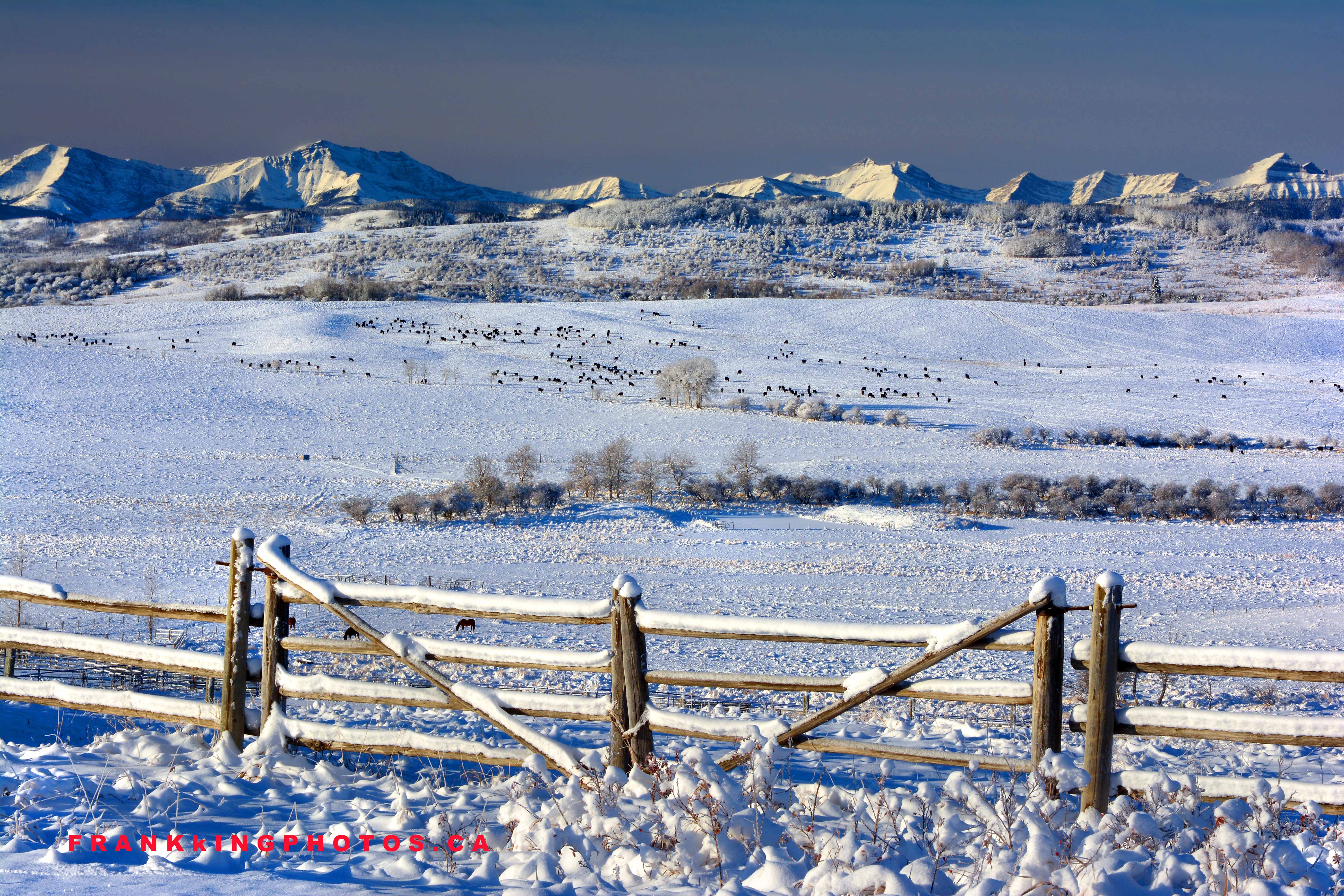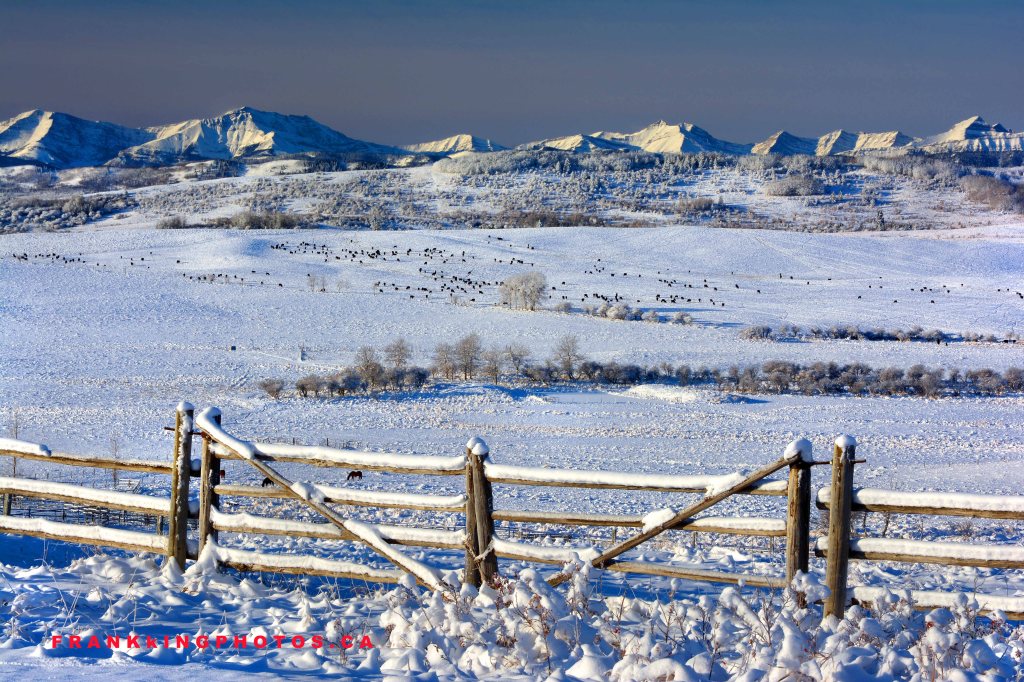 SNOWY MORNING IN THE ROCKY MOUNTAIN FOOTHILLS, NEAR DIAMOND VALLEY, ALBERTA