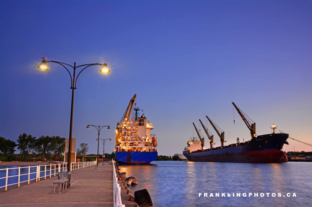 I was blessed to visit this port east of Toronto when two freighters were docked, providing lots of creative opportunities as sunrise beckoned. See the ring-billed gull perched on one of the streetlights? Just a little added bonus. 🙂 Nikon D7100, tripod, graduated density (darkening) filter on the sky