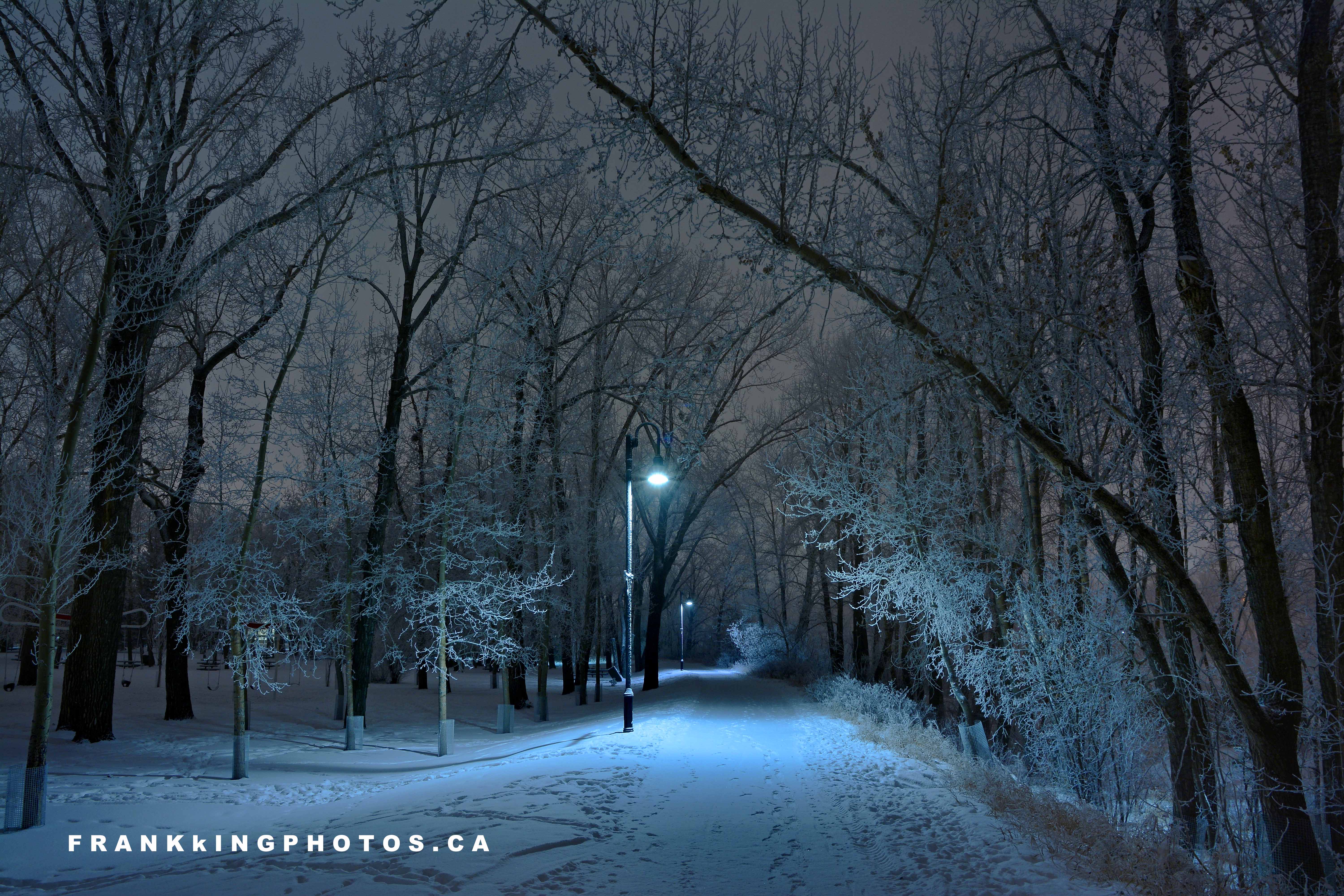 I found a reasonably high viewpoint to photography a snowy pathway through this beautiful park in the downtown of this western Canadian city. Frigid and frosty conditions made for an ideal environment to capture the quiet, solitary beauty of winter.