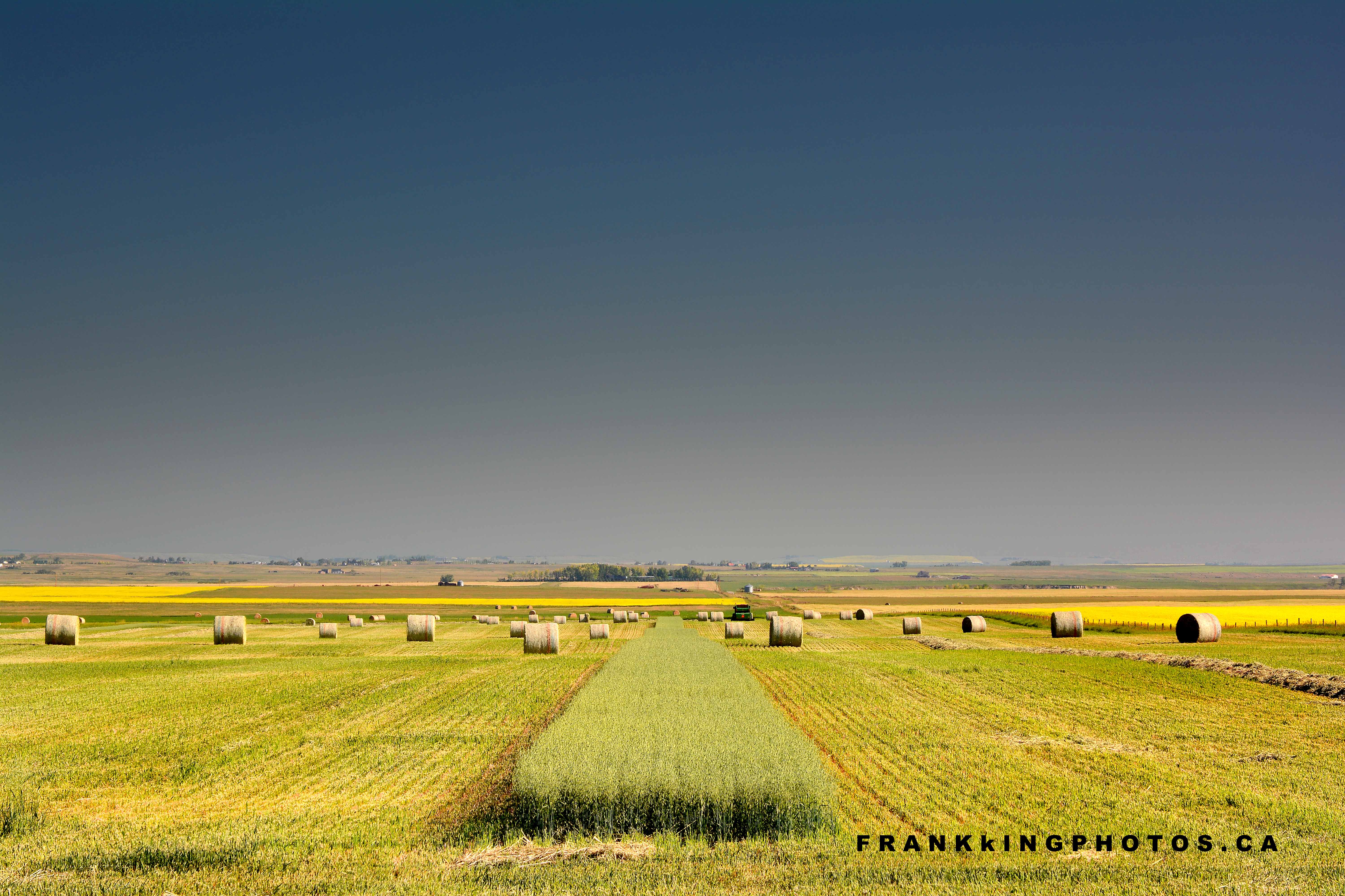 HAY ROLLS AND AN EPIC SKY, NEAR HIGH RIVER, ALBERTA