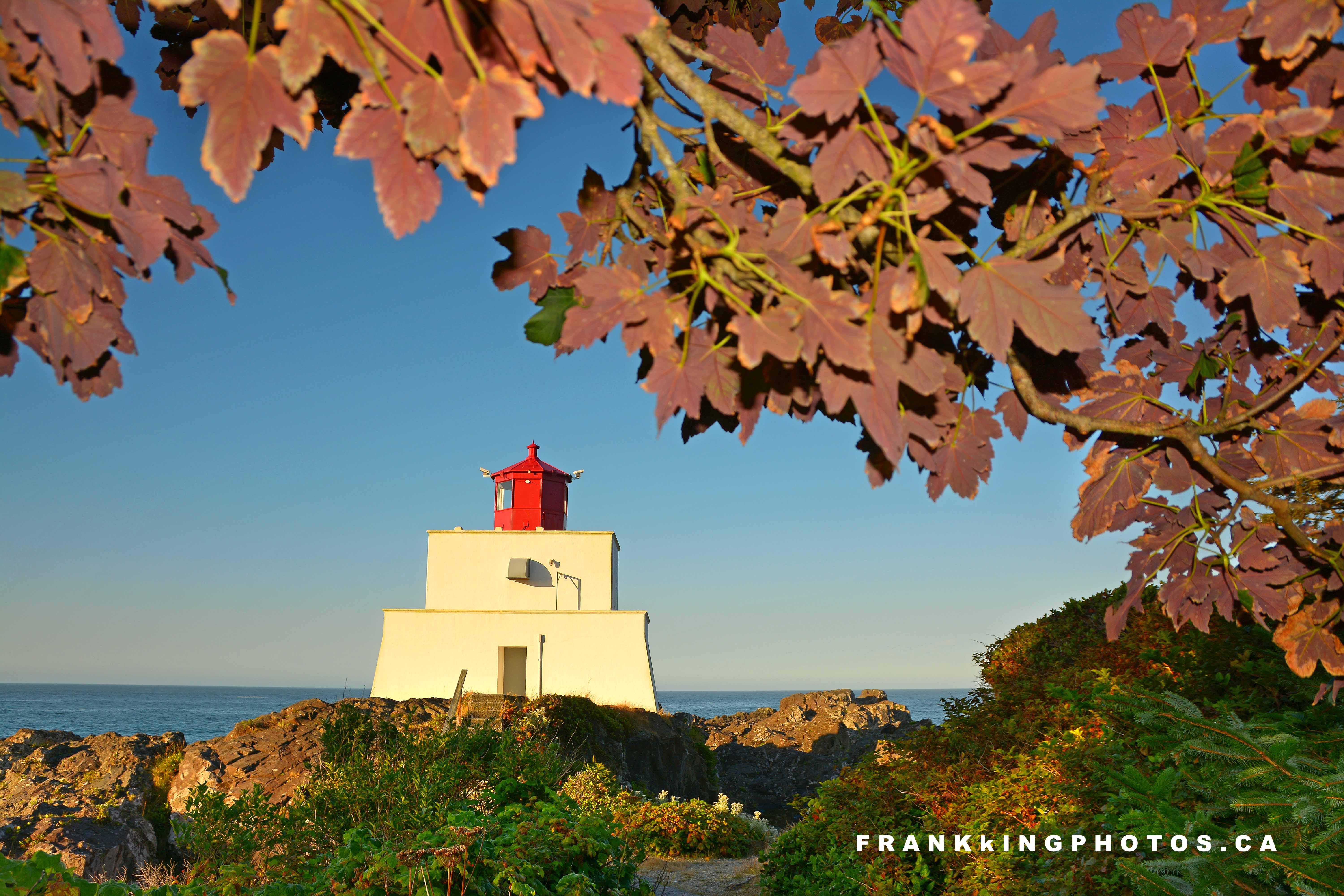 Named after the Greek sea goddess, Amphitrite lighthouse is one of the many tourist attractions on the west coast of Vancouver Island. As an active lighthouse, it’s closed to the public, but the grounds are open as part of the Lighthouse Loop section of the glorious Wild Pacific Trail. The lighthouse is in the midst of a challenging rocky landscape, so I searched for a decent viewpoint that would lessen the visual impact or the rocks. I think I achieved that here. Do you agree? Nikon D7100, tripod, polarizing filter, fill-flash (to illuminate the leaves)