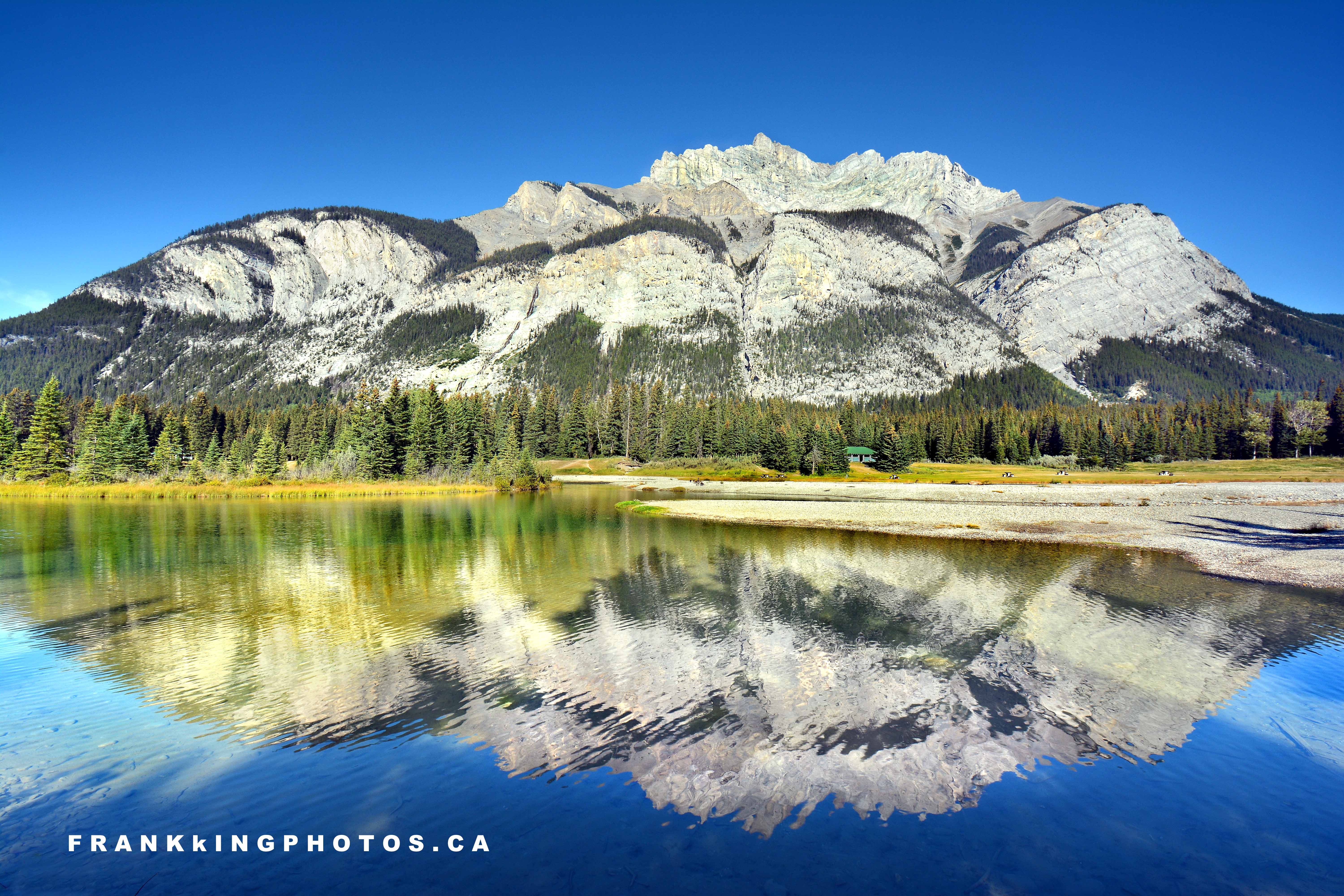 CASCADE MOUNTAIN REFLECTED IN CASCADE PONDS, ALBERTA
