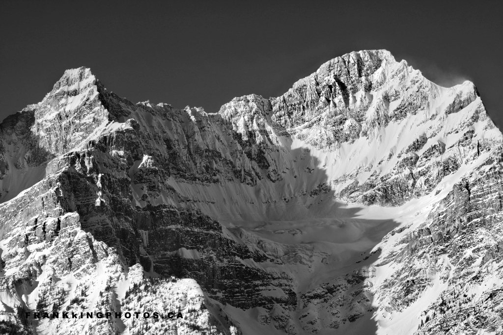 This western Canadian road, in Banff and Jasper national parks, is considering one of the most spectacular on the planet. There are many scenes like this that are especially stunning in morning light. There was some colour in the scene (brown rock and glowing blue sky), but I decided to create and show you a black-and-white version, simply because it’s more dramatic in my eyes. Nikon D7100, tripod, polarizing filter, 24-120 mm. zoom lens