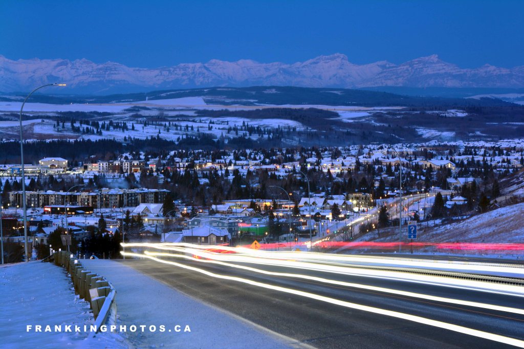 I knew the approaches to this western Canadian town would make for excellent light trail pictures, especially with the Canadian Rocky Mountains along the horizon. So I found this spot in -20c temperatures and made pictures like this. Eight seconds captured morning rush hour traffic. Nikon D7100, tripod