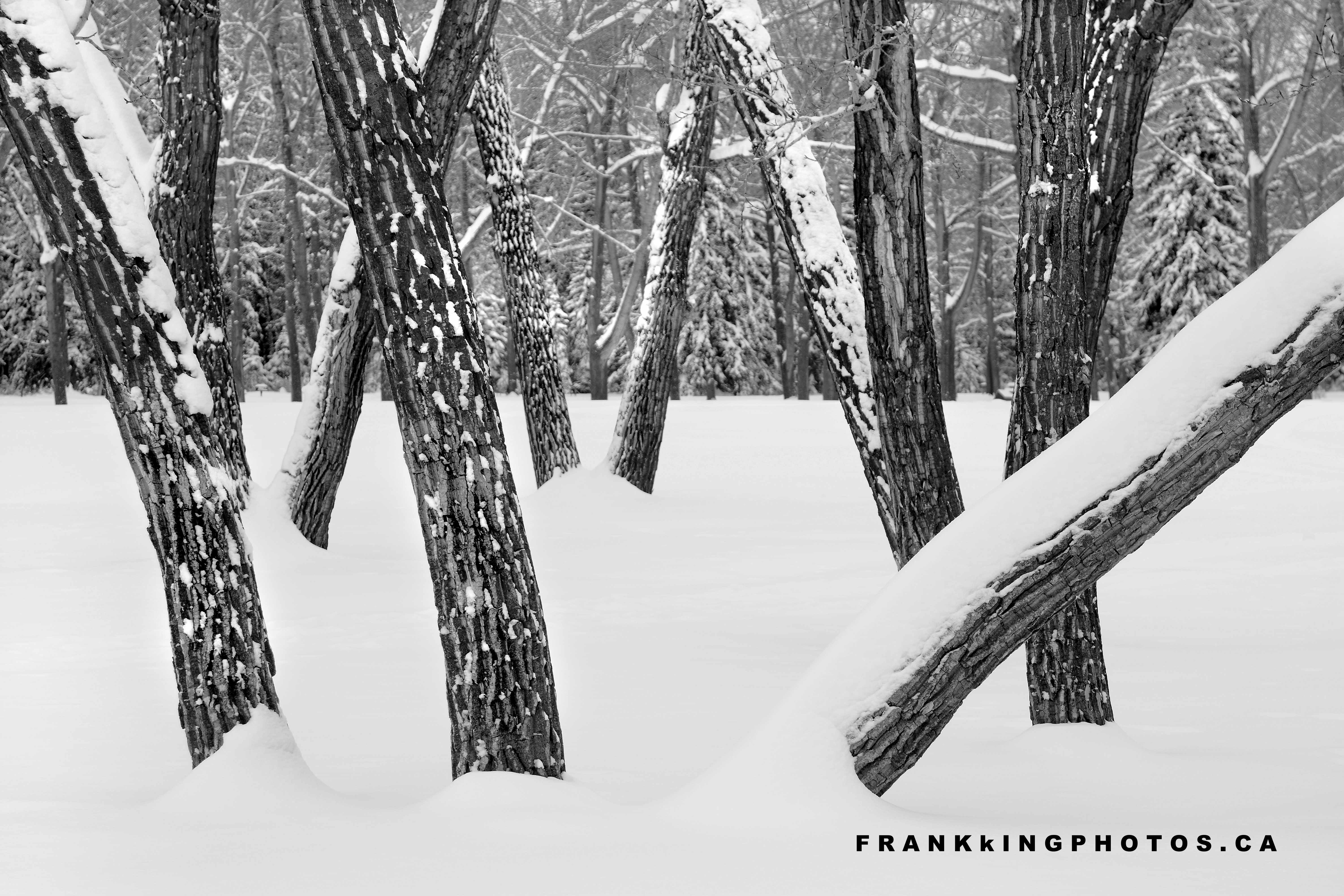 Spring is usually brief and intermittent in this western Canadian city and, as much as I’m ready for the end of winter, a six-inch March snowfall still inspired a visit to Bowness Park to search for images. I like this one; it’s quiet and almost abstract. Definitely not a calendar photo that will garner a huge reaction from most people. Indeed, I created a black-and-white version for you because the colour version is almost colourless. Nikon D7100, tripod, 24-120 mm. zoom lens