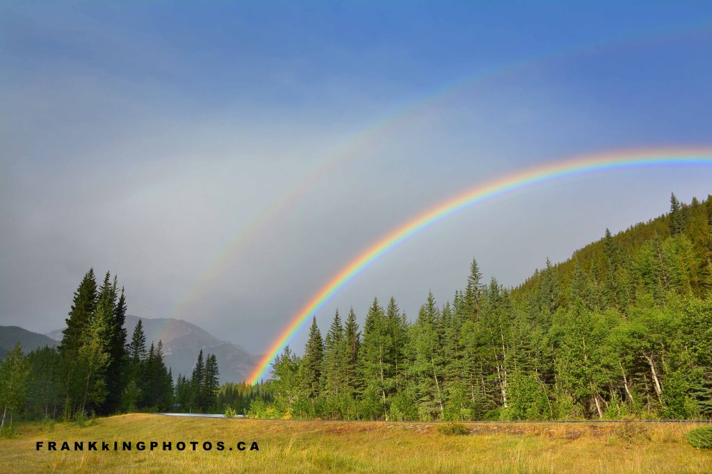 After waiting out a brief morning shower, I was blessed to see and photograph this stunning rainbow soaring over the forest in the Canadian Rocky Mountains. It didn’t last long, so I moved super-fast to find a decent landscape to complement the rainbow.
